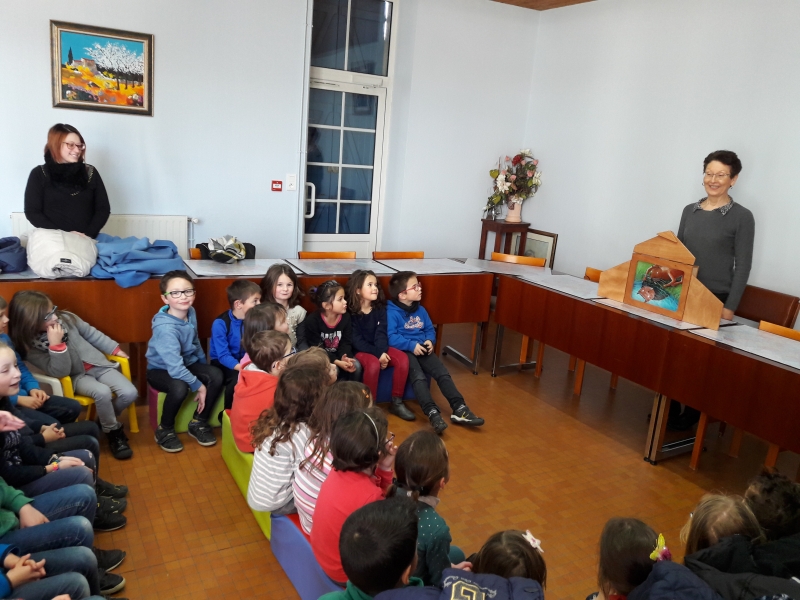 Elle nous propose alors une lecture d’album, un raconte tapis ou un kamishibaï comme ce mois-ci. Nous apprécions ses lectures toujours très vivantes.