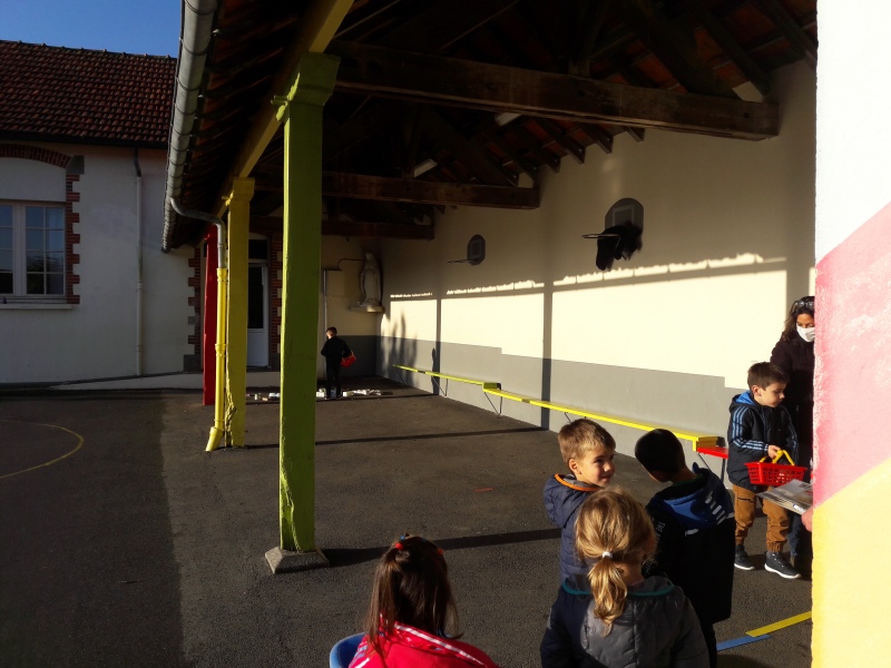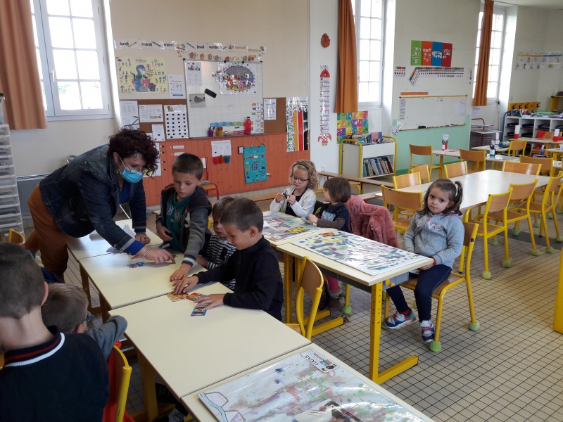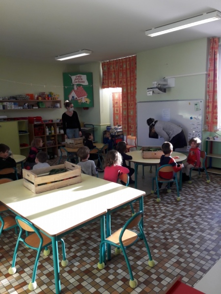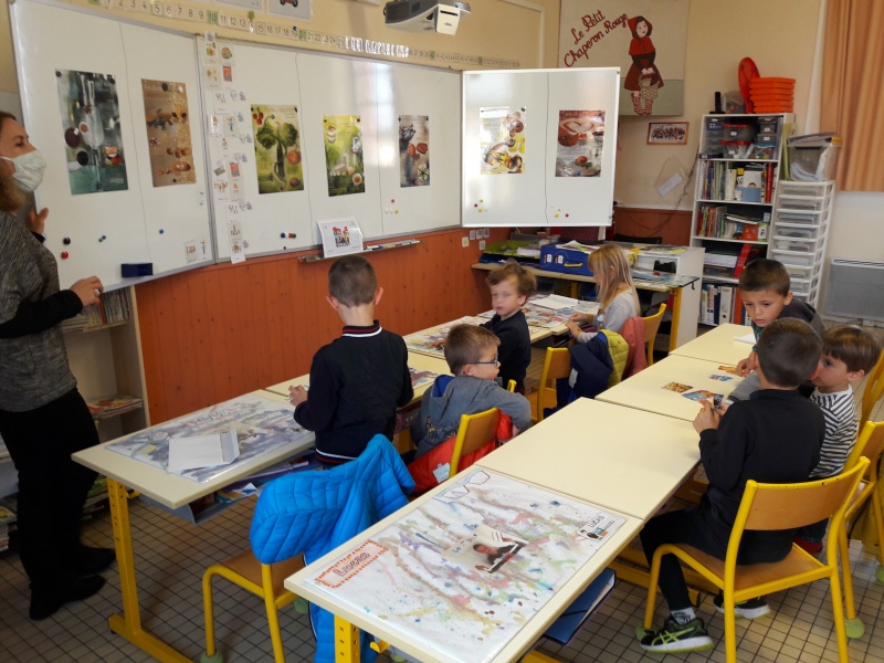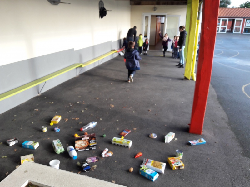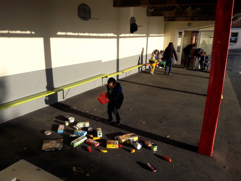 Les enfants ont été familiarisés à la pyramide des aliments avec les différentes familles : liquides, féculents, fruits/légumes, viandes/œufs/poissons, matières grasses, produits sucrés, produits laitiers