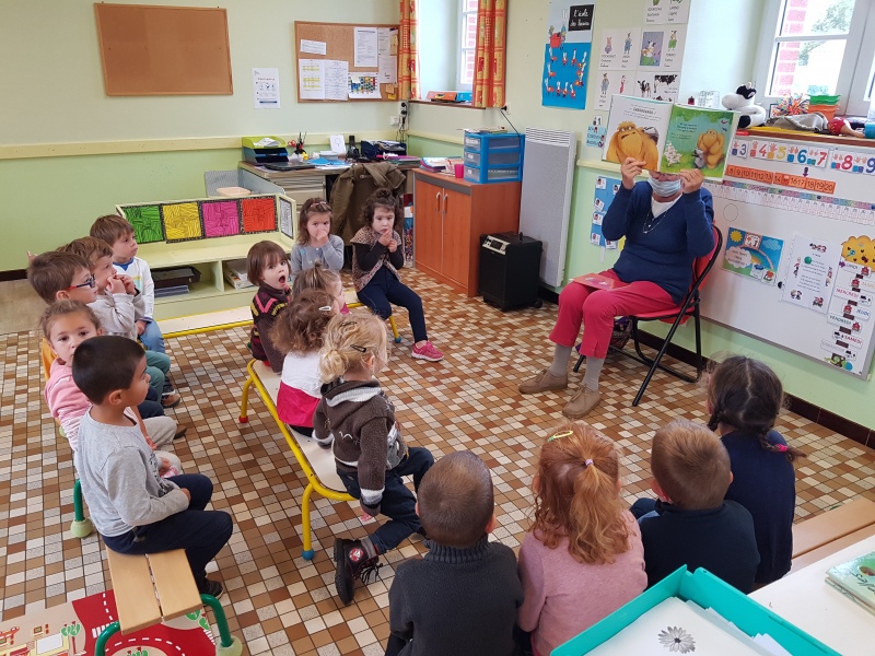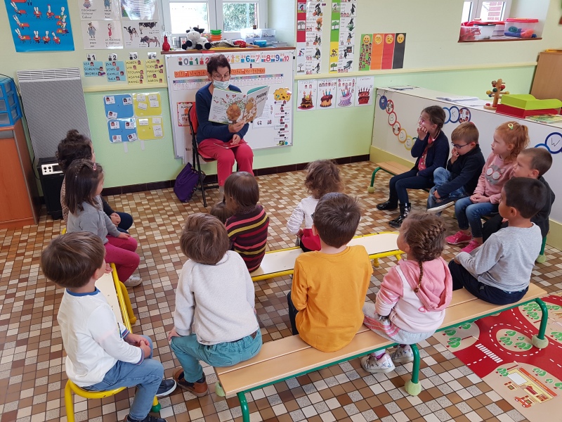 Lundi 5 octobre, une bénévole de la bibliothèque est venue dans la classe. Catherine a lu “Marre des câlins”, elle reviendra une fois par mois partager un moment de lecture avec les enfants. Le prochain est fixé le 9 novembre.
