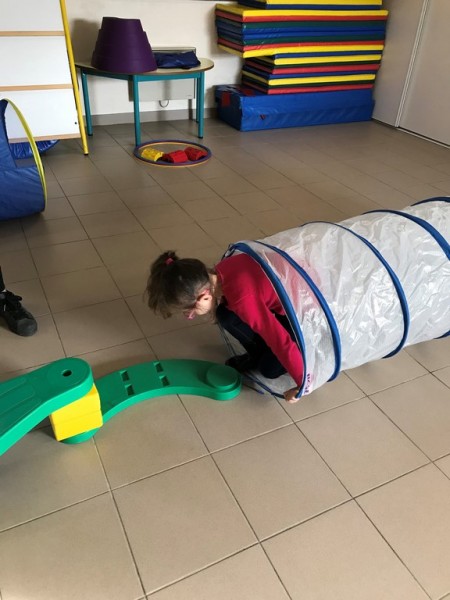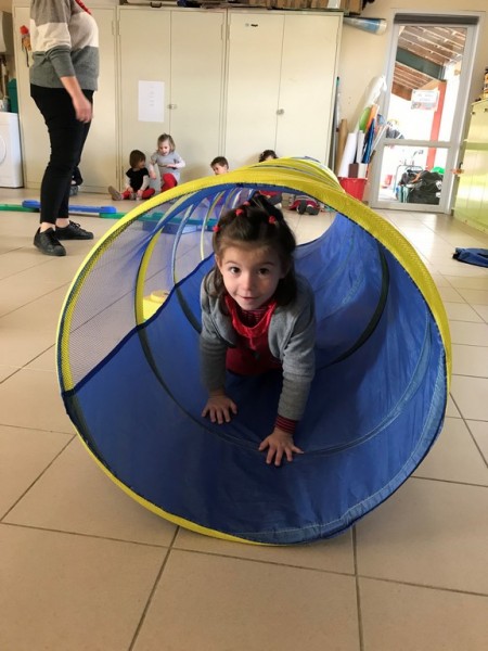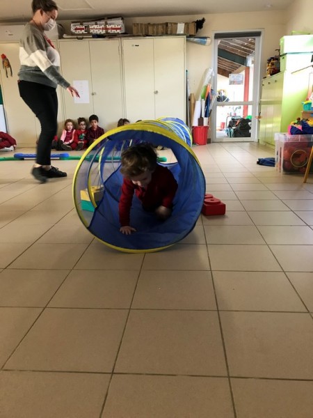 Chaque mardi, nous réalisons des parcours en motricité: garder l’équilibre, franchir, passer sous, dans, par-dessus etc… Pendant la période 2, nous disposons du matériel de l’UGSEL qui nous permet de varier nos parcours.