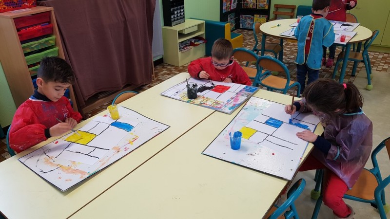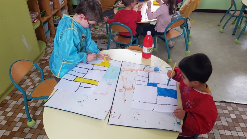 Les MS ont découvert Piet Mondrian avec la lecture de “La maison en construction”.