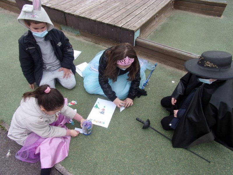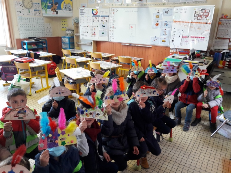 Les GS-CP ont participé en petits groupes à un escape game sur ce thème. La récompense qui était bien cachée dans le cartable de Chloé a été bien appréciée. Les enfants ont aussi mis leur créativité à l’épreuve en réalisant un masque unique et original. Et comme la tradition veut qu’il y ait un défilé, les enfants sont devenus chacun leur tour spectateurs de ce beau spectacle.