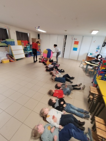 Nous avons ainsi pu réaliser de nouveaux parcours et découvrir le gros ballon de Kin ball (sport collectif d’origine canadienne).