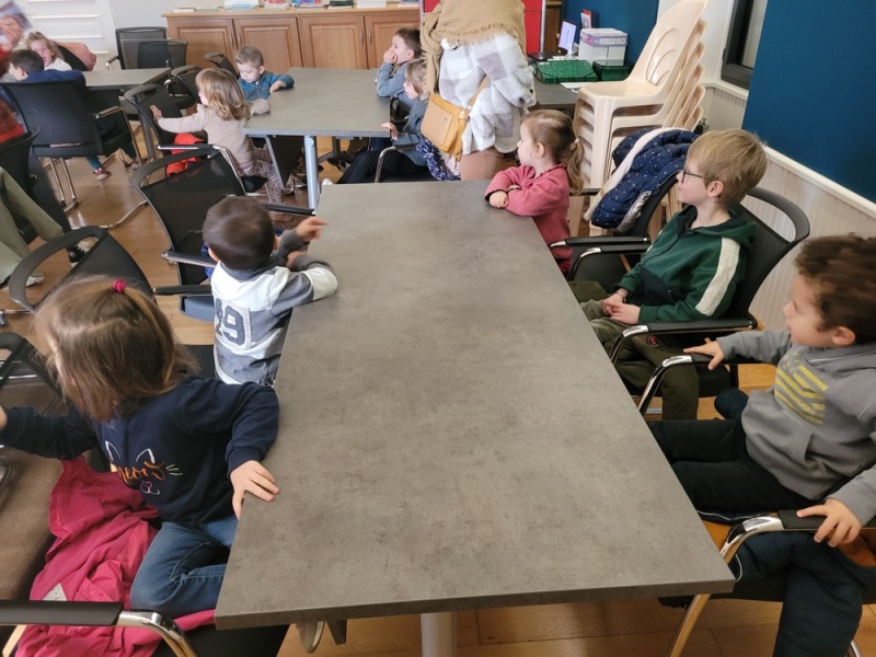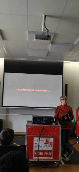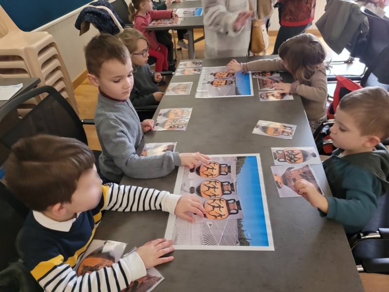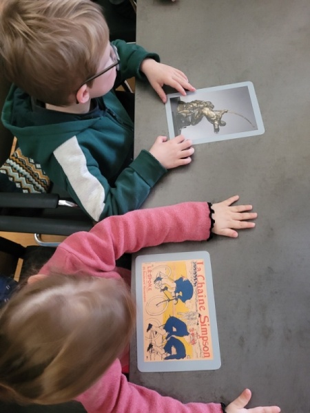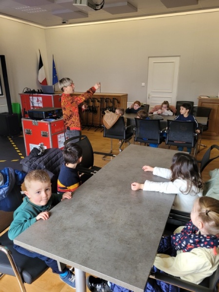 Mardi 20 février, nous avons pris le car avec la classe de GS/CP pour nous rendre à la mairie de Moutiers les Mauxfaits qui accueille une « micro folie ». C’est un musée numérique itinérant qui permet de faire découvrir de grandes œuvres artistiques.