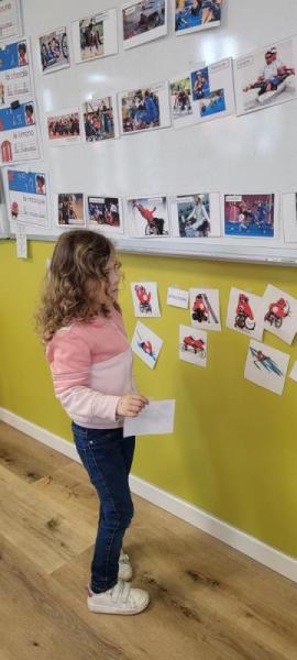 Atelier « parasports » dans lequel nous avons pu observer avec Coralie des photos d’athlètes, trouver le nom du sport et y associer l’image de la Phryge correspondante.
