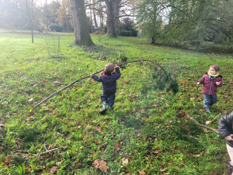 Mardi matin, c’était école dehors ! Avant les activités, nous avons fait notre petit tour du parc et nous avons pu constater le passage de la tempête la semaine dernière : beaucoup de branches et de feuilles par terre.