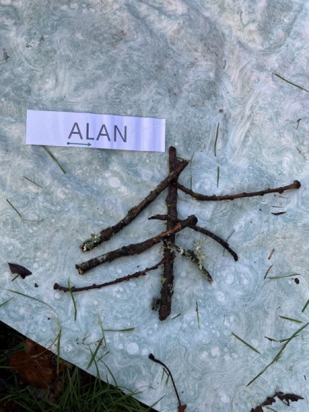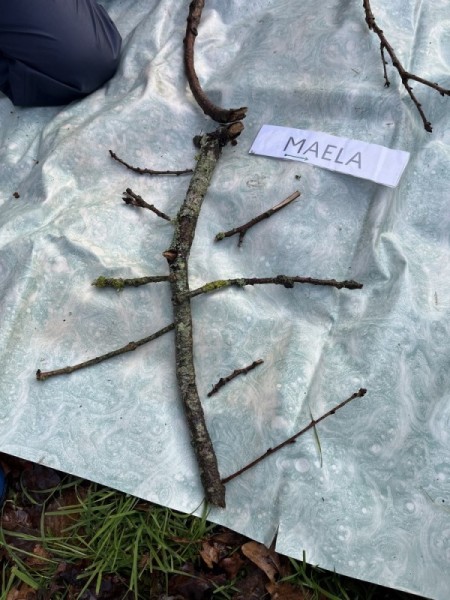 Les MS ont fait un atelier « boîte à compter » en binôme en utilisant des cailloux à la place des jetons. Puis ils ont représenté un sapin avec des bouts de bois (ligne oblique), seul puis collectivement.