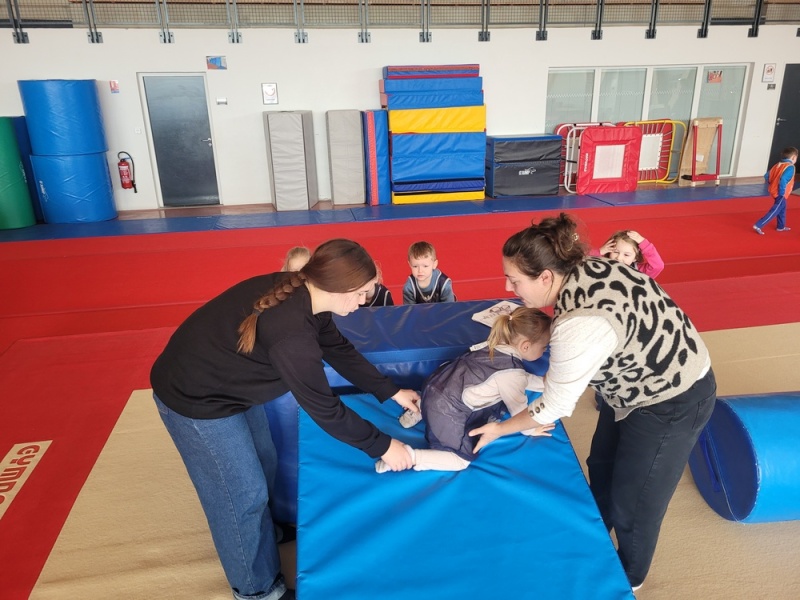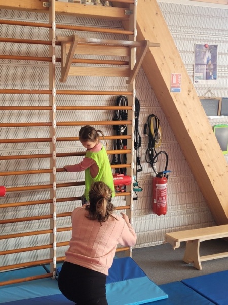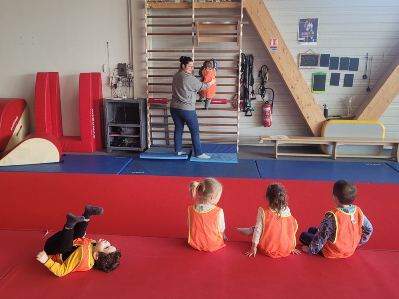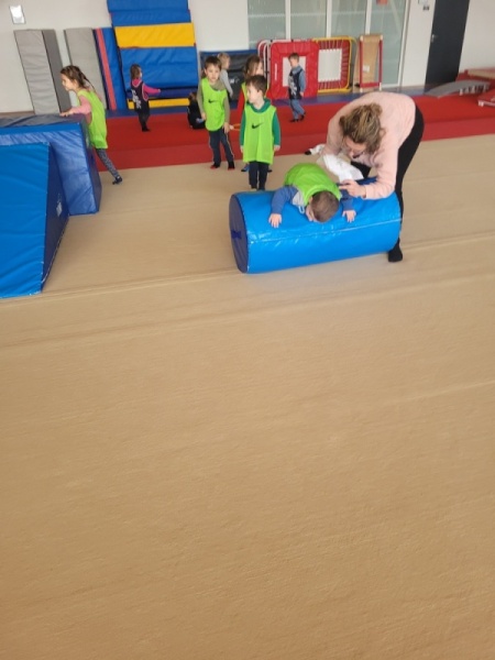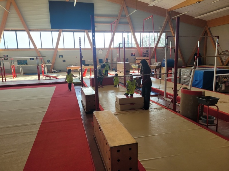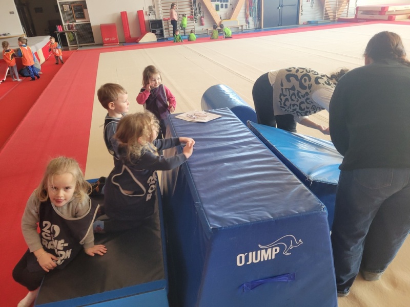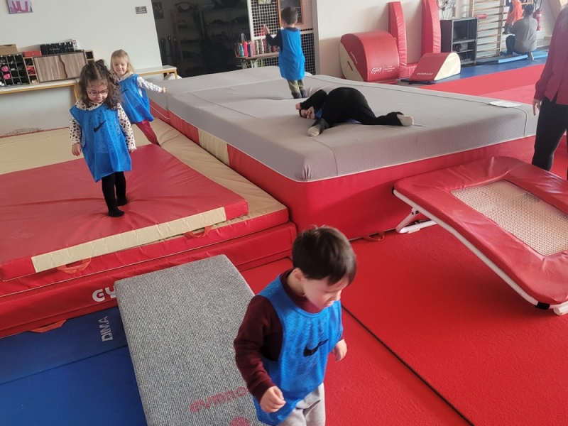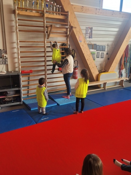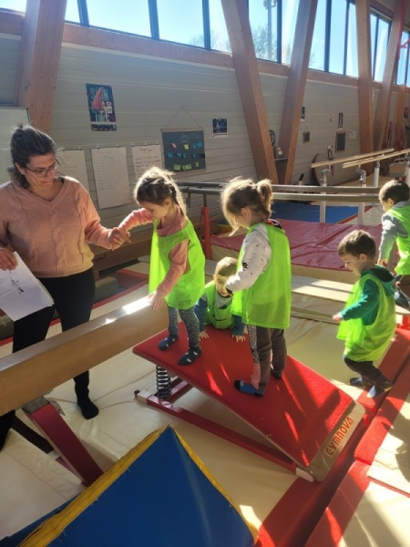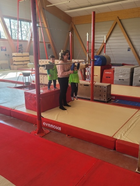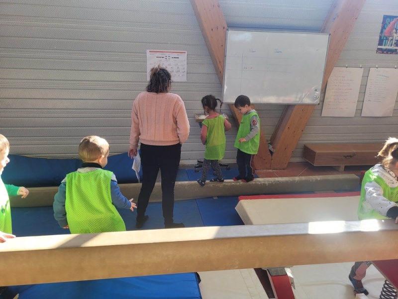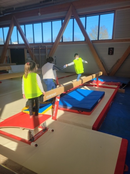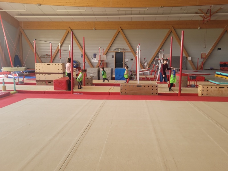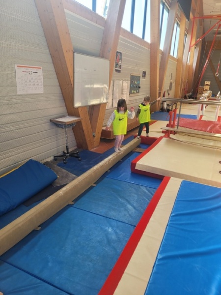 Lundi 2 mars, nous avons pris le car pour nous rendre à la salle de gymnastique de Moutiers les Mauxfaits. Nous avons enfilé des chasubles pour identifier les 5 groupes de 5 enfants, nous nous sommes échauffés puis nous avons réalisé 5 ateliers: les poutres, les barres fixes, les espaliers, le tremplin et les roulades.